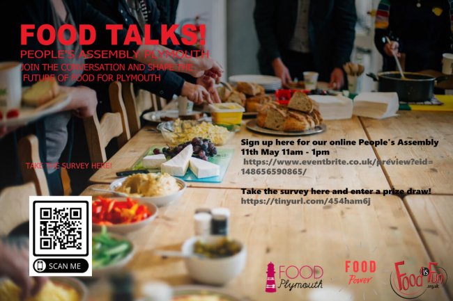 FOOD TALKS – People’s Assembly! Join a big conversation about food. Between now and May Food Plymouth’s Food Equality Project and Food is Fun CIC will be talking to people all…